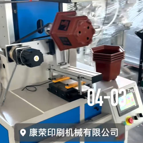 The hexagonal flower pot (screen printing machine) has been debugged for the client in Linyi, Shandong! Hexagonal flower pot dual-pattern servo screen printing machine